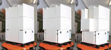 使用收縮膜時(shí),應(yīng)注意托盤的類型和需要進(jìn)行收縮包裝的物品。這需要預(yù)先知道承載單元的形狀(圖1):是平直的,或者與托盤平齊(A類)、物體上下是否有突出(B類)、或者需要包裝的物品在托盤上顯得形狀不規(guī)則(C類)。重量和形狀的穩(wěn)定性對(duì)承載單元影響重大。因此,最具有決定性的問(wèn)題是,托盤上的物品是否能保持形狀尺寸穩(wěn)定、相對(duì)堅(jiān)固,或者很柔軟,在很強(qiáng)的壓縮力下會(huì)變形。